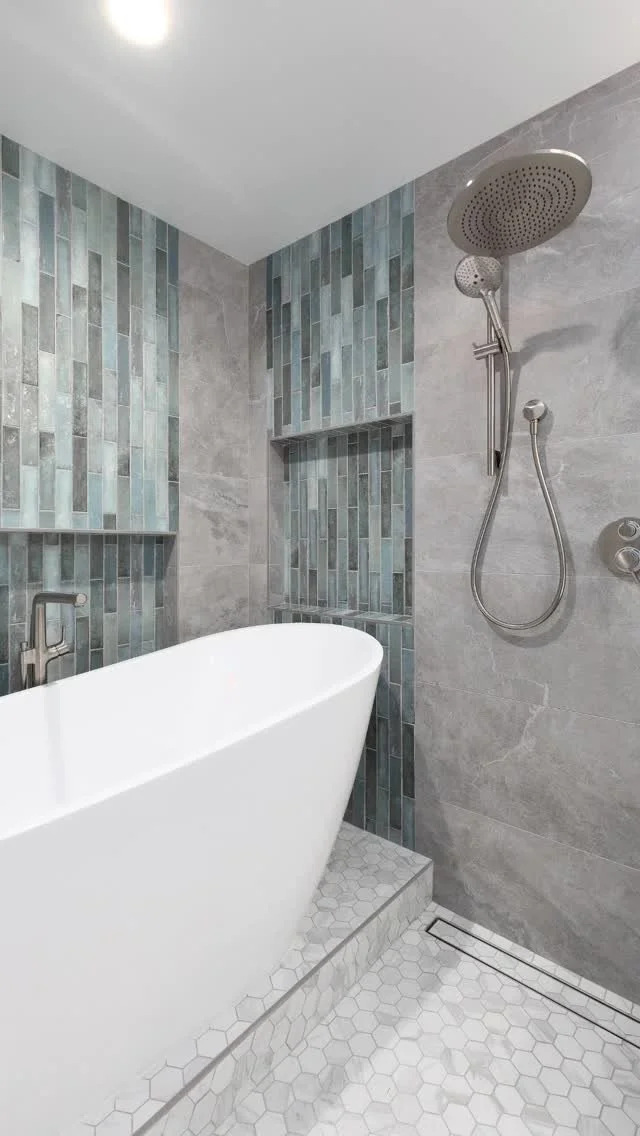 Walk-in Shower in the Master Bathroom from a Room Addition, Pacifica, California.