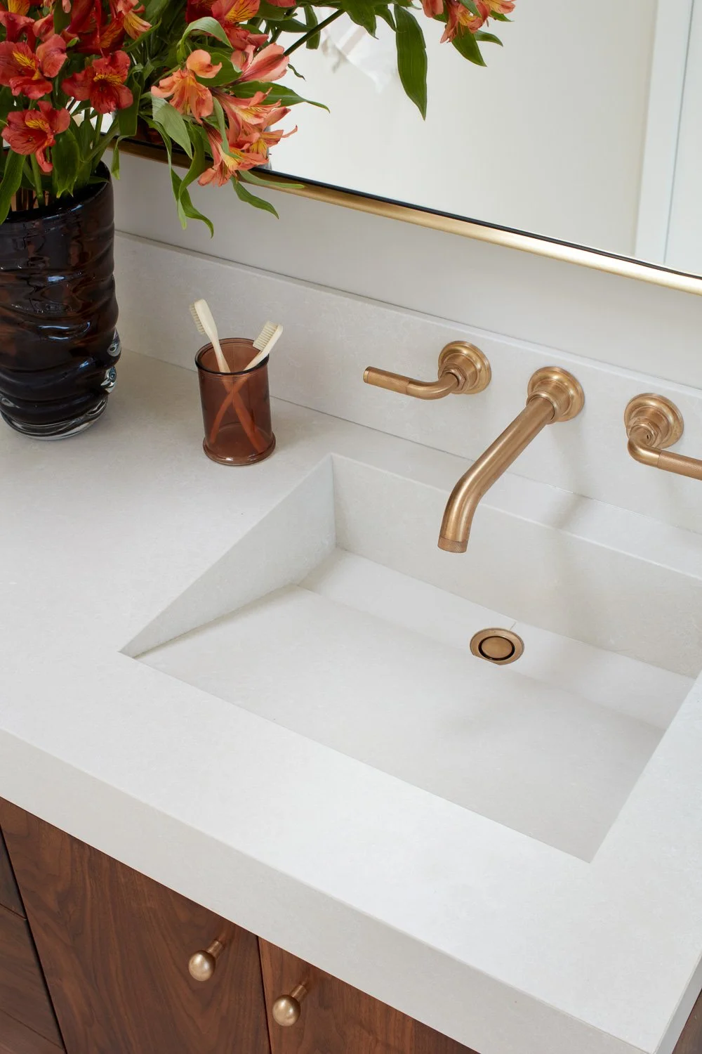 Brushed gold or matte black fixtures
